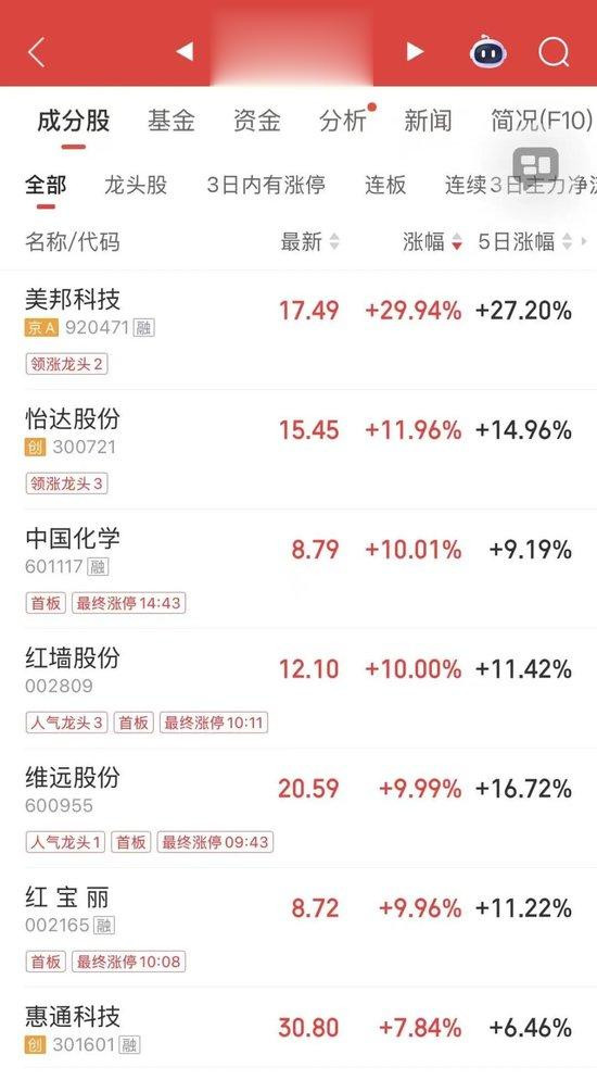 从板块来看,化工板块逆势爆发,红宝丽、山东赫达等多股涨停。其中,中国化学尾盘直线拉升涨停,总市值为536.78亿元,截至收盘涨停板上有超24万手封单。